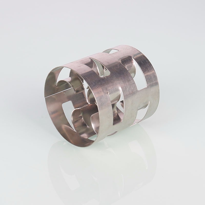 金屬鮑爾環(huán)填料是本世紀(jì)四十年代德國BASF公司開發(fā)的采用金屬薄板沖制而成,一般開孔的總面積約為整個(gè)環(huán)壁面積的35%左右。與同規(guī)格的拉西環(huán)填料相比,由于鮑爾環(huán)填料在環(huán)壁上開了許多窗孔,使得塔內(nèi)的氣體和液體能夠從窗口自由通過,所以填料層內(nèi)的氣、液體分布情況比拉西環(huán)填料有了較大的改善,其分離性能明顯提高,幫鮑爾環(huán)填料仍是目前被采用的主要環(huán)形填料之一。我廠生產(chǎn)的金屬鮑爾環(huán)特性參數(shù)如下: